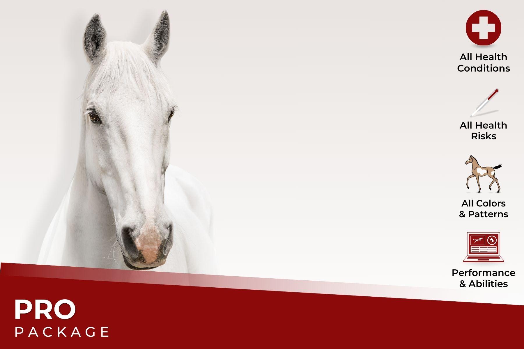 Bundle and Save! The Pro Package + Ancestry Bundle combines our two most popular products to give you the most comprehensive view of your horse available on the market. This bundle includes all of our available color, health, and performance tests, as well as our Ancestry test and access to our innovative interactive platform so you can learn more about your horse.